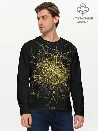 Мужской лонгслив базовый / Ночная карта Парижа