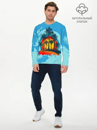 Мужской лонгслив базовый / Море. Пальмы. Песок