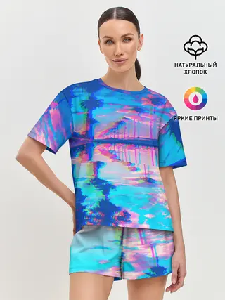 Женская футболка оверсайз / ГАВАЙИ ГЛИТЧ