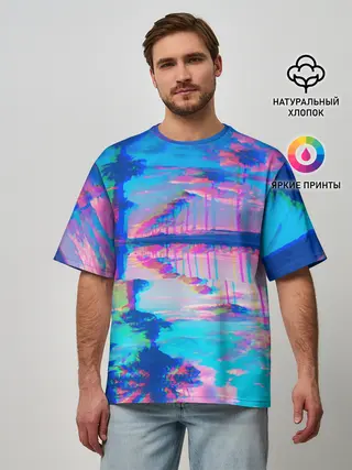 Мужская футболка оверсайз / ГАВАЙИ ГЛИТЧ