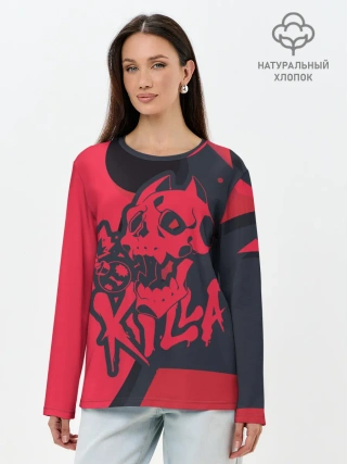 Лонгслив женский. Хлопок / KILLA красная