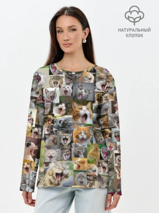 Лонгслив женский. Хлопок / Неко ахегао цвет