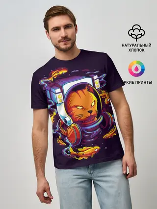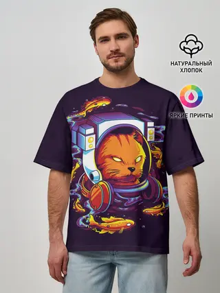 Мужская футболка оверсайз / Техно Кот