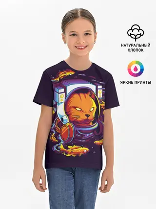 Детская базовая футболка / Техно Кот