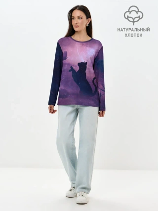 Лонгслив женский. Хлопок / Кошка играет с бабочкой