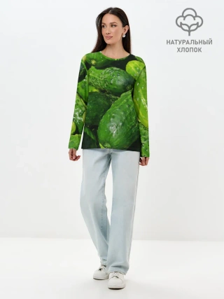 Лонгслив женский. Хлопок / Огурцы