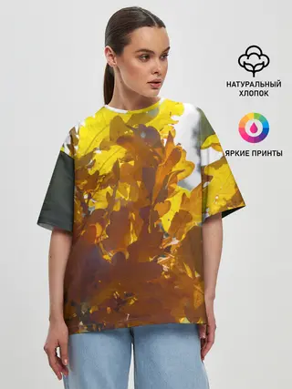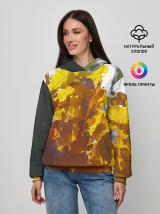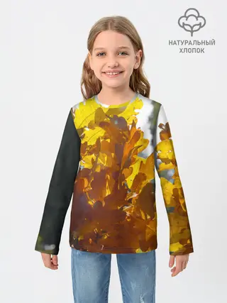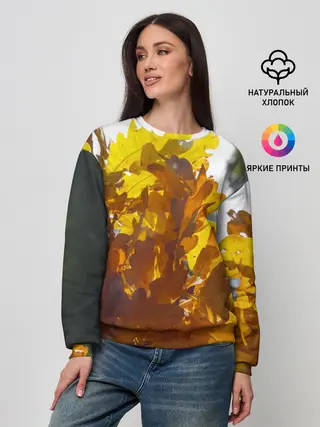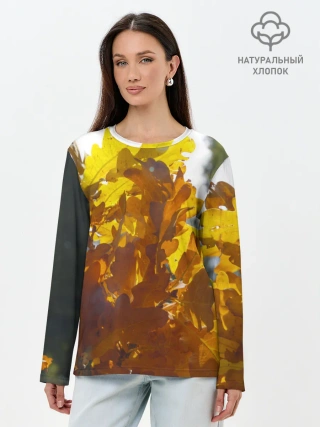 Лонгслив женский. Хлопок / Букет из осенних листьев