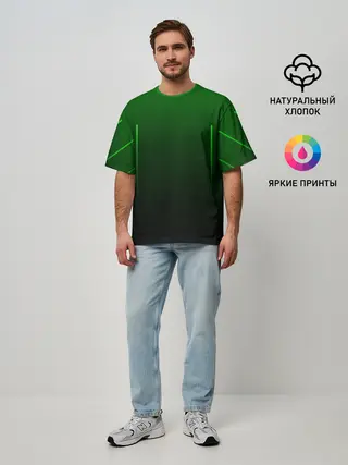 Мужская футболка оверсайз / Неоновые линии на градиенте