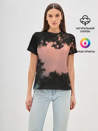 Женская футболка оверсайз / Пальмы вид снизу закат