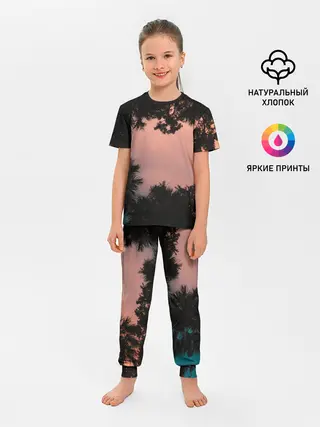 Мужская пижама с брюками / Пальмы вид снизу закат