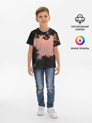 Мужская футболка оверсайз / Пальмы вид снизу закат