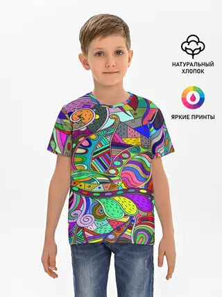 Детская базовая футболка / Дудлы узор разноцветный хиппи