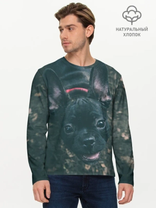 Мужской лонгслив базовый / Бульдог морда собакена черного
