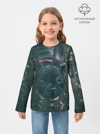 Детский лонгслив / Бульдог морда собакена черного