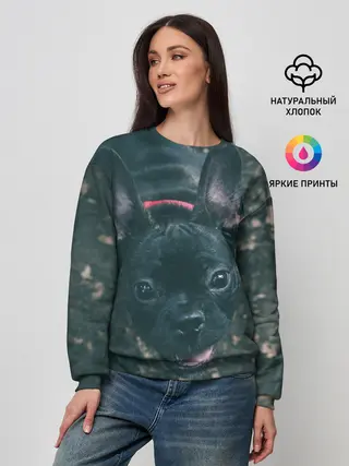 Женский свитшот / Бульдог морда собакена черного