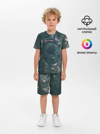 Детская пижама с шортами / Бульдог морда собакена черного