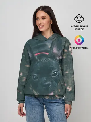 Женское худи / Бульдог морда собакена черного