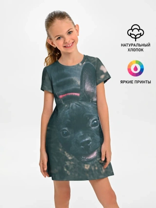 Детское платье / Бульдог морда собакена черного