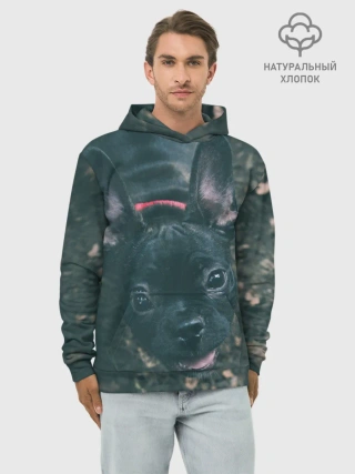 Худи мужской база хлопок / Бульдог морда собакена черного
