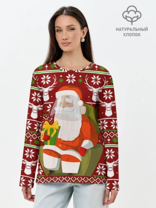 Лонгслив женский. Хлопок / Санта с защитным экраном