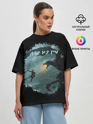 Женская футболка оверсайз / TES SKYRIM FIGHT DRAGON