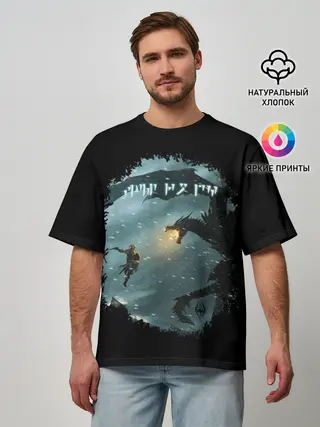 Мужская футболка оверсайз / TES SKYRIM FIGHT DRAGON