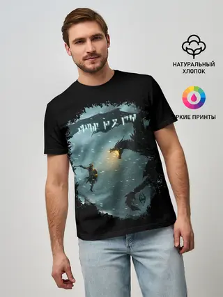 Мужская базовая футболка / TES SKYRIM FIGHT DRAGON