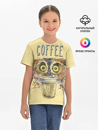 Детская базовая футболка / Сова и кофе