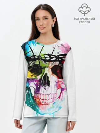 Лонгслив женский. Хлопок / Череп и краска