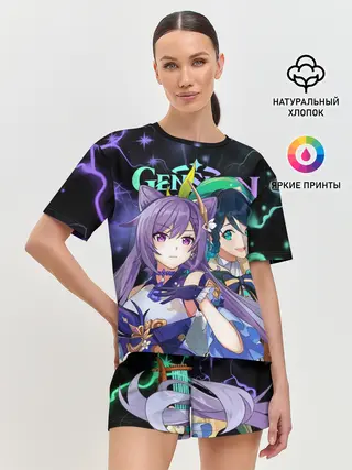 Женская пижама с шортами / Венти и Кэ Цин, Genshin Impact