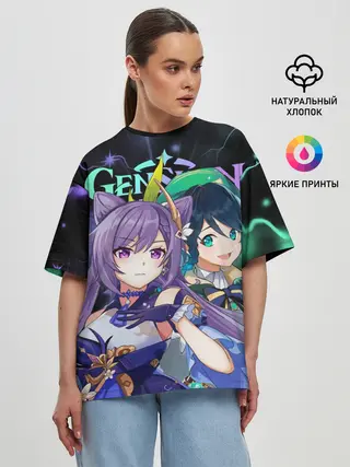 Женская футболка оверсайз / Венти и Кэ Цин, Genshin Impact