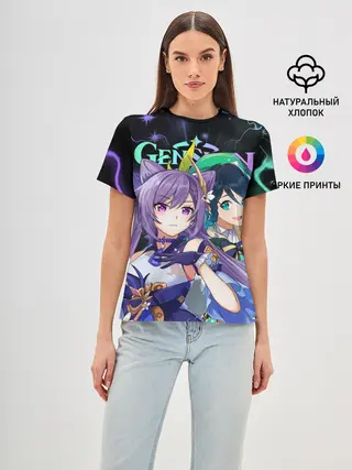 Женская базовая футболка / Венти и Кэ Цин, Genshin Impact