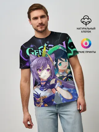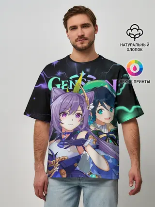 Мужская футболка оверсайз / Венти и Кэ Цин, Genshin Impact