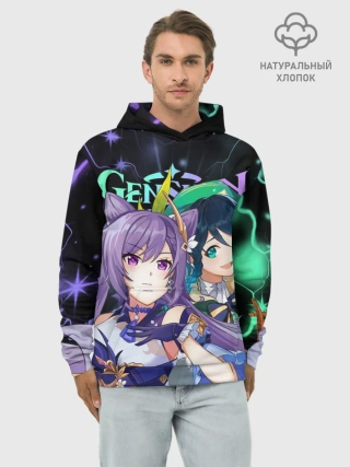 Худи мужской база хлопок / Венти и Кэ Цин, Genshin Impact