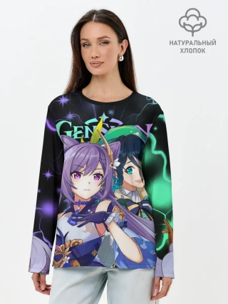 Лонгслив женский. Хлопок / Венти и Кэ Цин, Genshin Impact