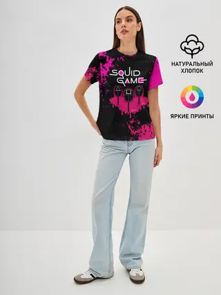 Женская футболка оверсайз / Squid Game брызги красок стража.