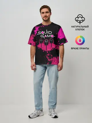 Мужская футболка оверсайз / Squid Game брызги красок стража.