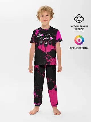 Детская пижама с брюками / Squid Game брызги красок стража.