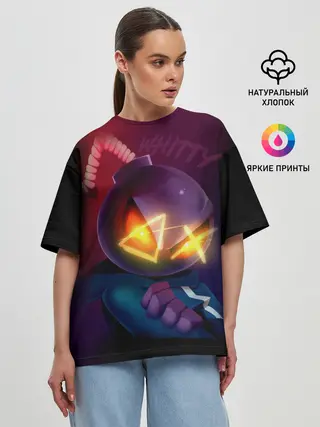 Женская футболка оверсайз / витти на темном фоне