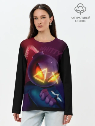 Лонгслив женский. Хлопок / витти на темном фоне