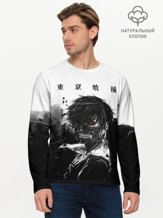 Мужской лонгслив базовый / Канеки Кен черно-белый