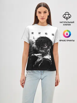 Женская футболка оверсайз / Канеки Кен черно-белый