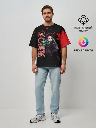Мужская футболка оверсайз / Танджиро Kimetsu no Yaiba