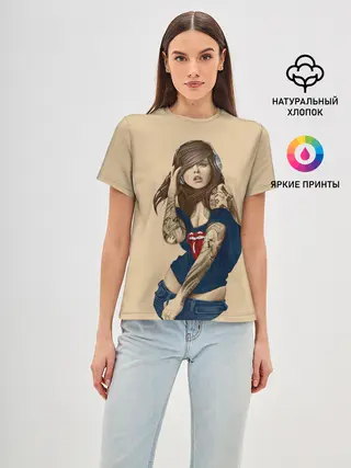 Лонгслив женский. Хлопок / ДевушКа слушает Музыку