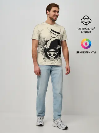Мужская футболка оверсайз / шляпа и череп One Piece