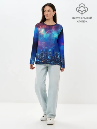 Лонгслив женский. Хлопок / НОЧЬ В ГОРОДЕ