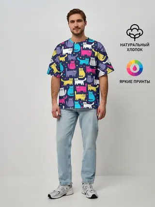 Мужская футболка оверсайз / Разноцветные котики