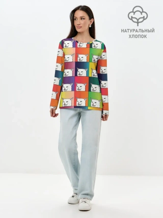 Лонгслив женский. Хлопок / Woman Yelling at Cat