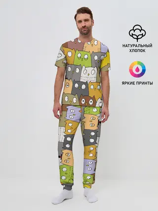 Мужская пижама с брюками / СОВЫ КОТИКИ