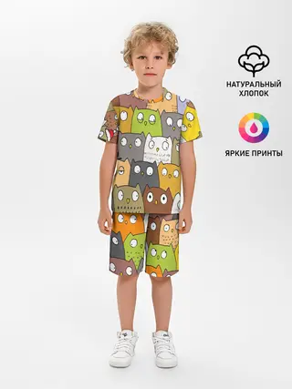 Детская пижама с шортами / СОВЫ КОТИКИ
